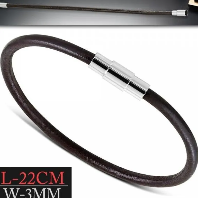 3mm mocca farvet læderarmbånd med magnetlås til mænd, kvinder og par