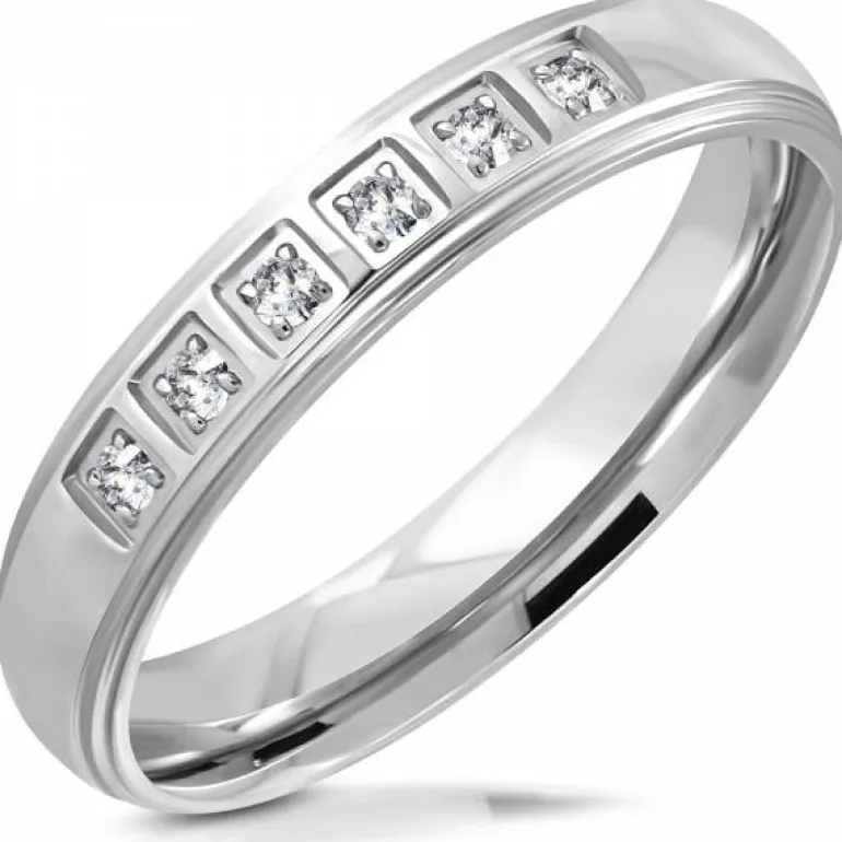 Stålring med 6 zirkoner til kvinder