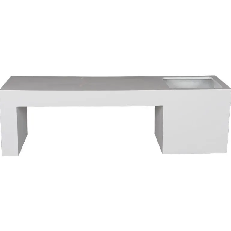 Smart bænk til entreen, kontoret, havestuen eller venteværelset med indbygget plantekumme. Fremstillet i hvid højglans fiberstone / glasfiber og kan sagtens bære 2 voksne.
