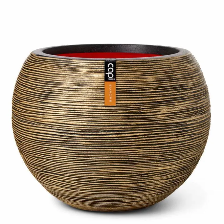 Denne elegante rund bowle / krukke er vandtæt til indendørs brug og kommer med ekstra isolerende orange lag i bund og sider, som beskytter dine planter både sommer og vinter. Ved udendørs brug under åben himmel skal du bore 15mm hul i bunden og starte med 1/3 Lecanødder. 100% recycle materialer og CO2 neutral produktion.