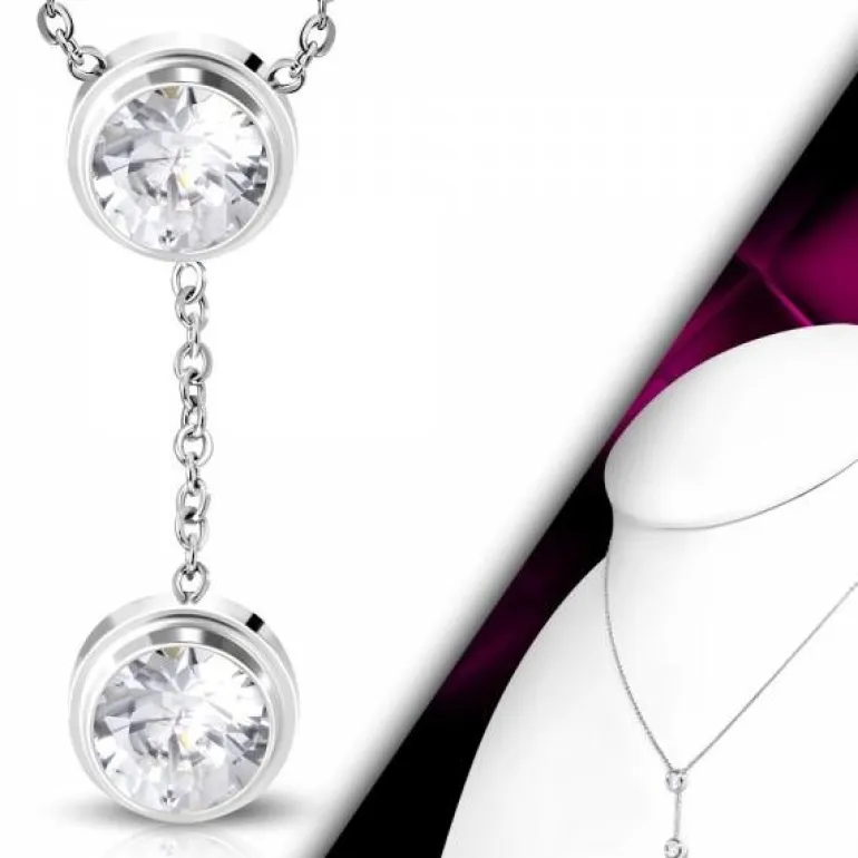 Super sød og feminin halskæde i rustfri stål til kvinder og piger – vedhæng med 2 bling zirkon sten. Måske som konfirmationshalskæde.