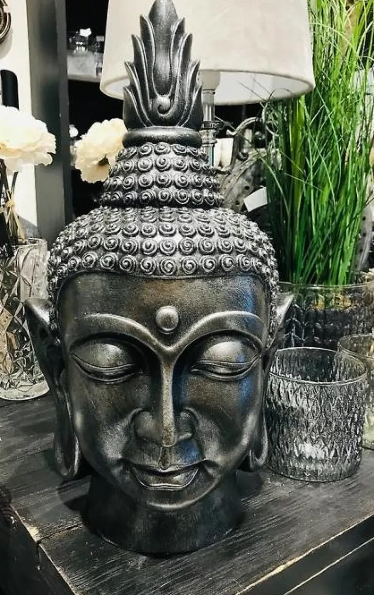 40cm Buddha hoved i sort/sølv antik
