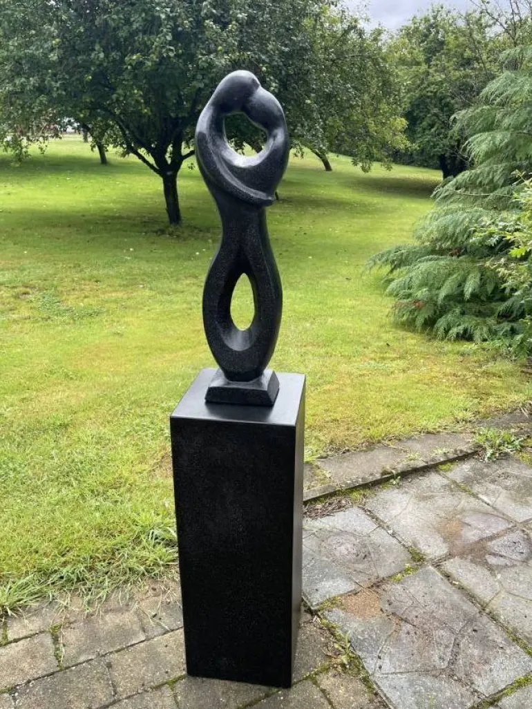 Abstrakt dansende par med sokkel i sort sten terrazzo
