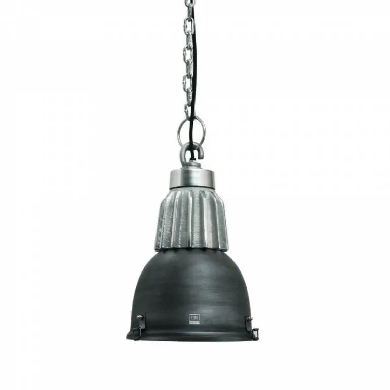 Super lækker pendel i gunmetal farve (mørk antrazit) og ribbed aluminiums top – kraftig kæde i alu og med matchene loftroset. Til dig der elsker den rå og moderne i din bolig.