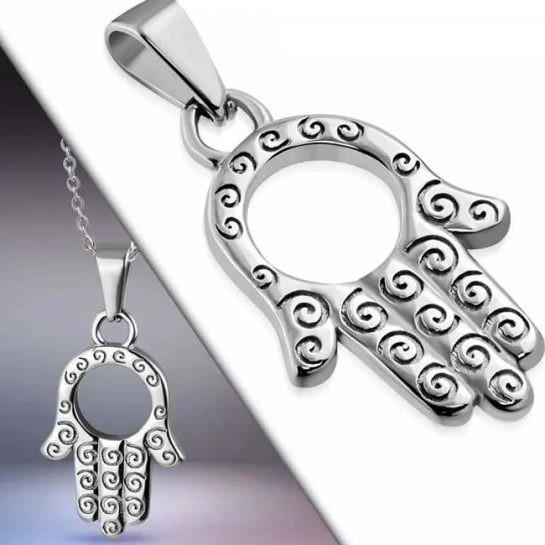 Fatimas hånd / Hamsa smykkevedhæng i rustfri stål