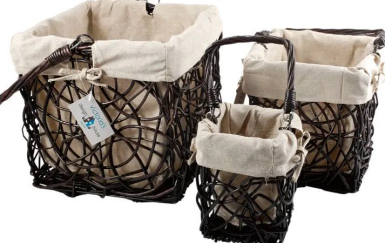 Sæt med 3 stk dekorative og praktiske i flettet brun pil