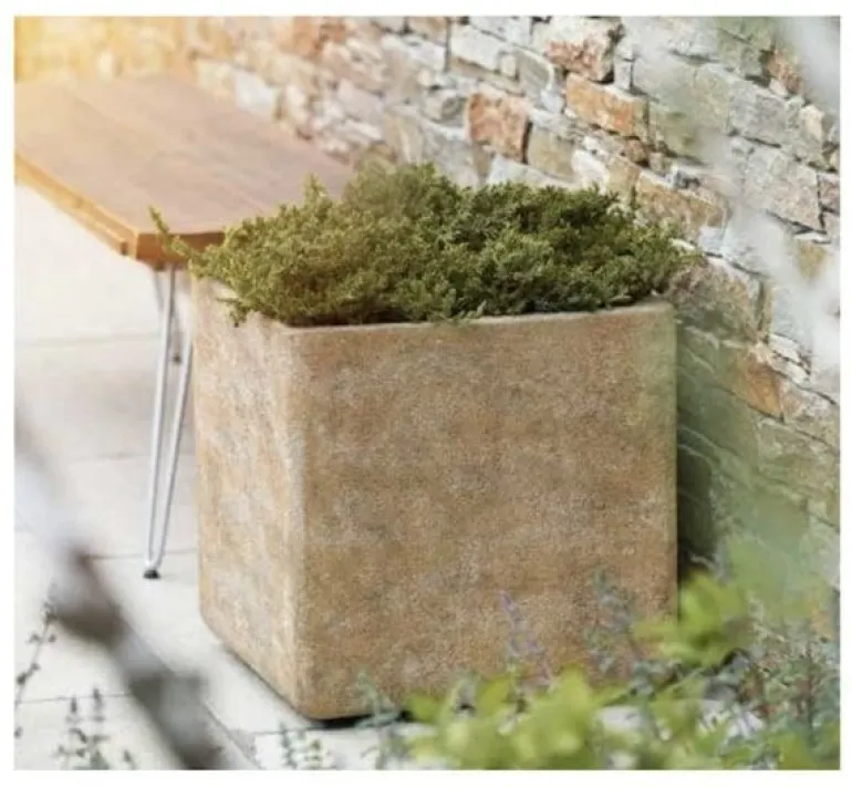 Rummelig og rustik firkantet kubisk udendørs Plantekasse MED bundhul og integrerede fødder – start med 1/3 lecanødder inden beplantning – Her får du et sæt med 3stk til prisen.