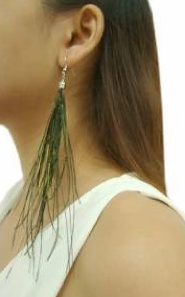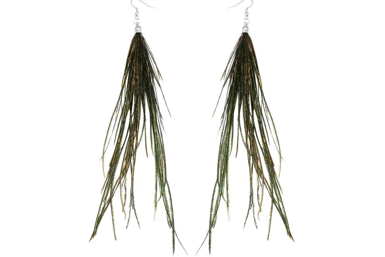 Lækre fashion øreringe med fjer i grønne nuancer – meget feminine og smukke fjerøreringe til kvinder.