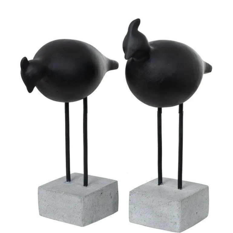 Minimalistisk og enkel dekoration med 2 sorte fugle i sandsten på fod. God egenvægt.