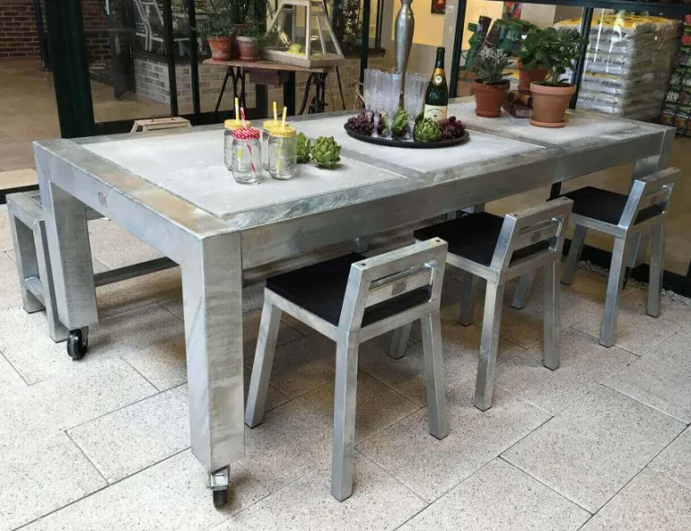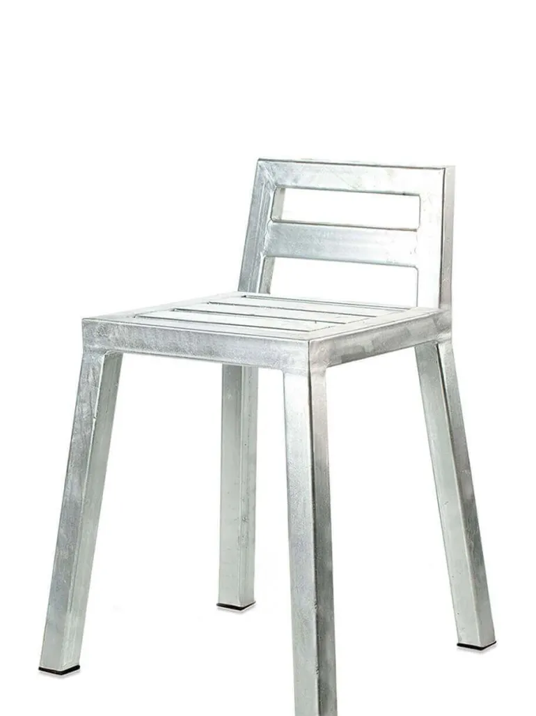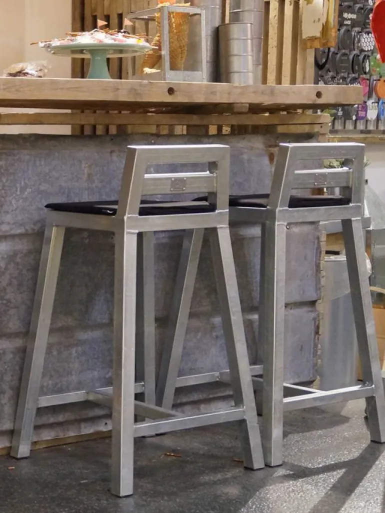 Galvaniseret lavrygget spisestol,lavrygget barstol eller taburet i varmgalvaniseret jern.