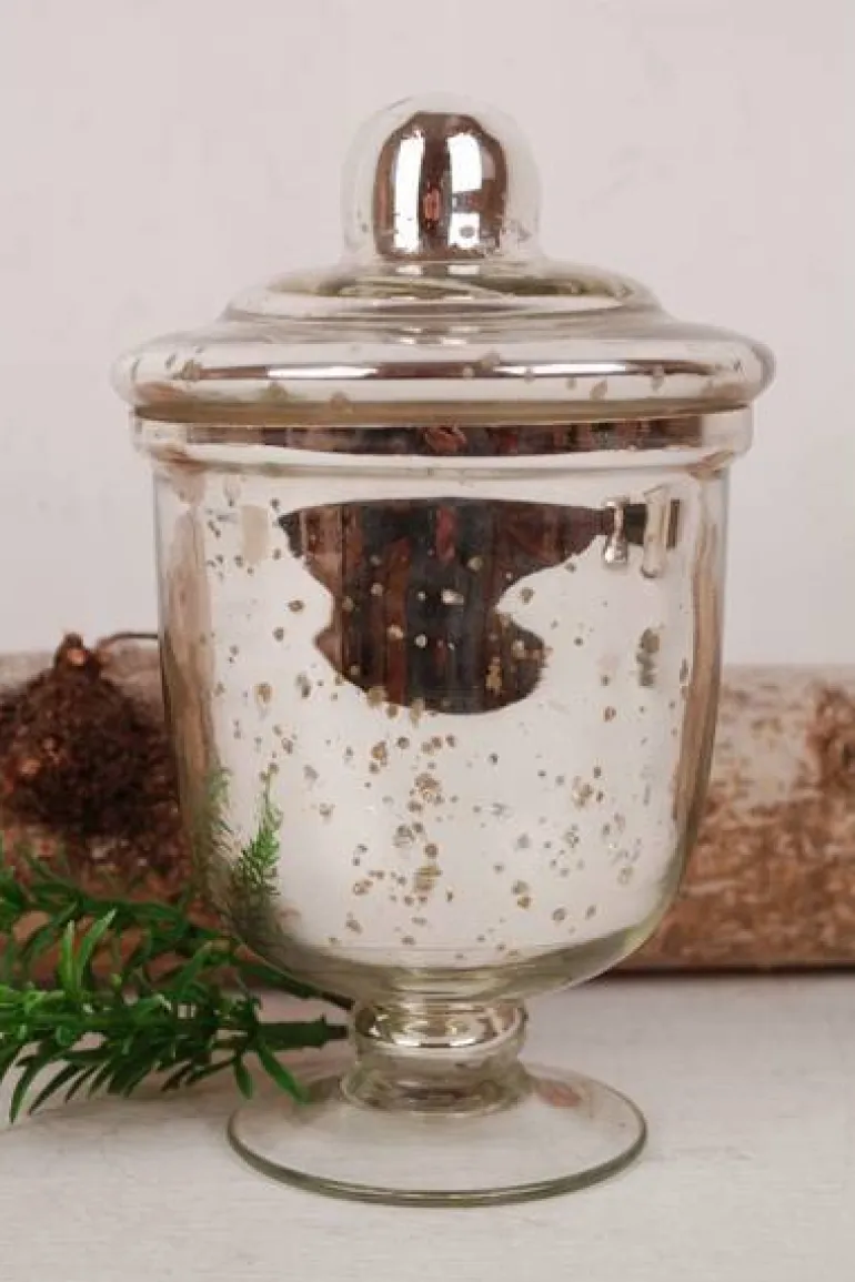 Flot og tidløs krukke / dåse i fattigmands sølv med låg – kun fantasien sætter grænser for hvor den flotte glaskrukke kan bruges – nemlig overalt.