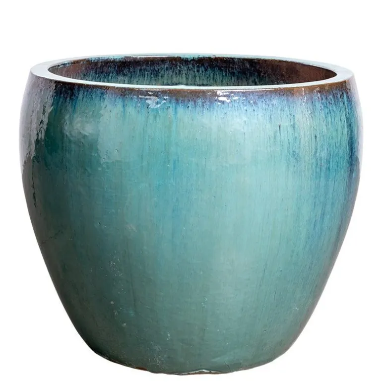 Flot glaseret grøn jade udendørskrukke til terrassen – 3 størrelser med unik glasering.