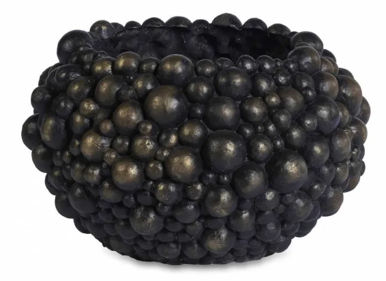 Indendørs krukke/potte i topkvalitet med små globes i antik guld – helt fantastisk udtryk. Fremstillet af knust sten og glasfiber i en stærk og smuk forening.