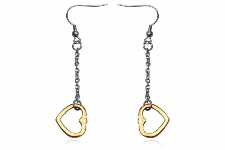 Lange fine øreringe i et let og romantisk design – 316L rustfri stål med forgyldte hjerter.
