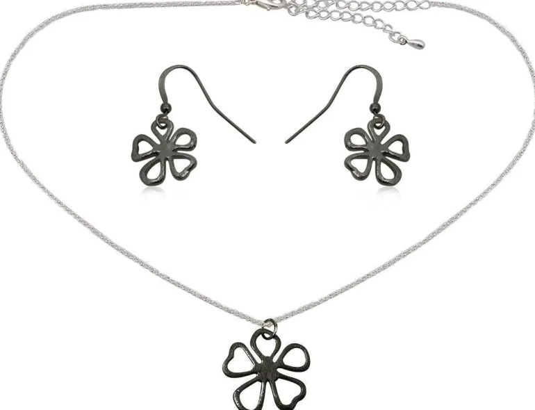 Smykkesæt med mørkegrå blomster – halskæde og matchene øreringe