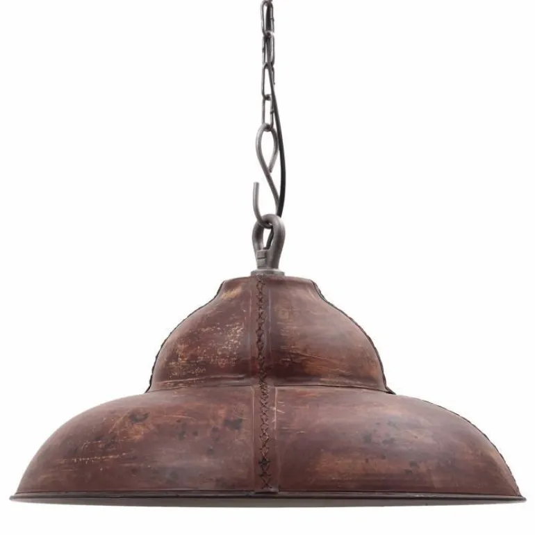 Rustik og naturlig hængelampe i rå læderlook med kæder og loftroset. Lampen er fra PTMD Collection og i flot kvalitet. Et godt match til hvide rå vægge og enkel indretning.