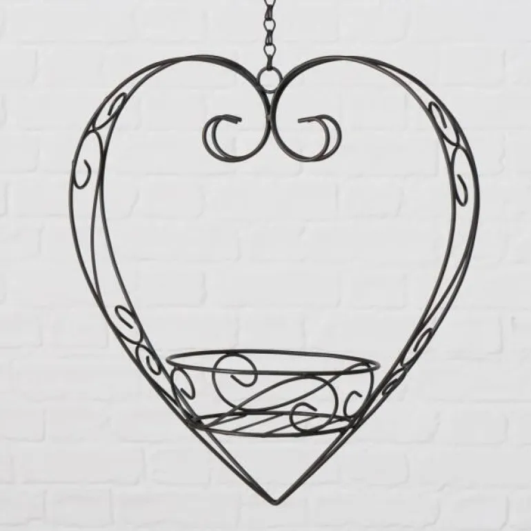 Fint og speciel hjerte i mørk antik jern til blomsterpotter – potteholderen kan hænge overalt hvor du gerne vil have grønne planter som dekoration. Ved udendørs brug vil den ruste med tiden !!