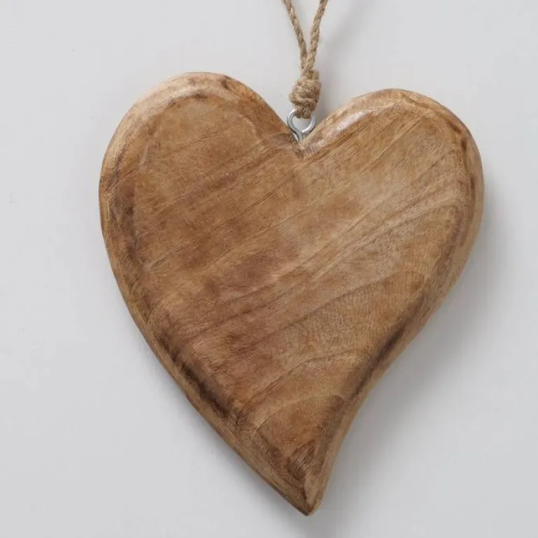 Fine træhjerter med hampesnor – dekorative hjerter i mangotræ til f.eks vinduer eller vægge