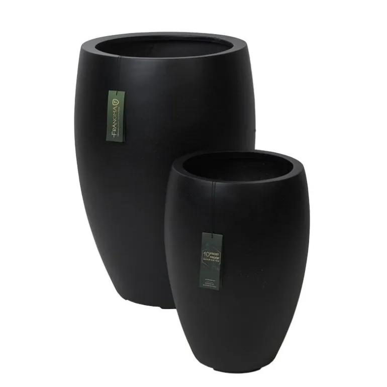 Høj flot rund udendørs frostsikker Franoma krukke i matsort glasfiber til de lidt større planter.