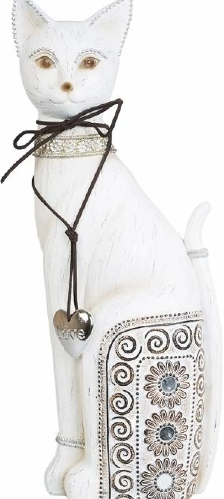Super flot og dekorativ figur af kat med sølvhjerte om halsen og mønster/dekoration – små klare perler der reflekterer lyset flot.