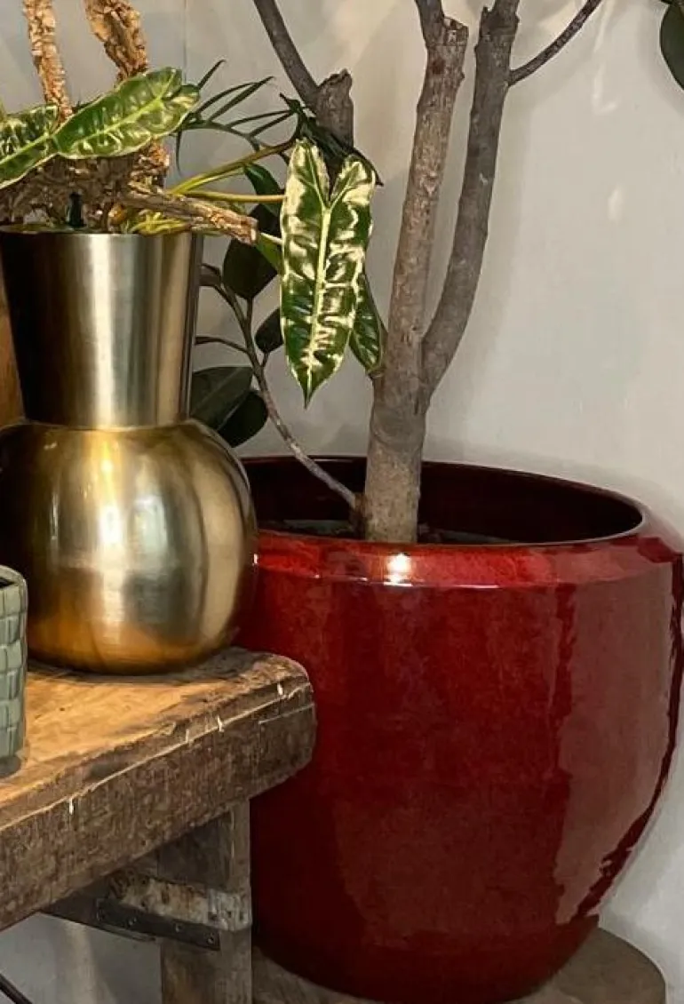 Helglaserede indendørs krukker i en super kvalitet – okseblod farve med indvendig glasering også – 2 størrelser