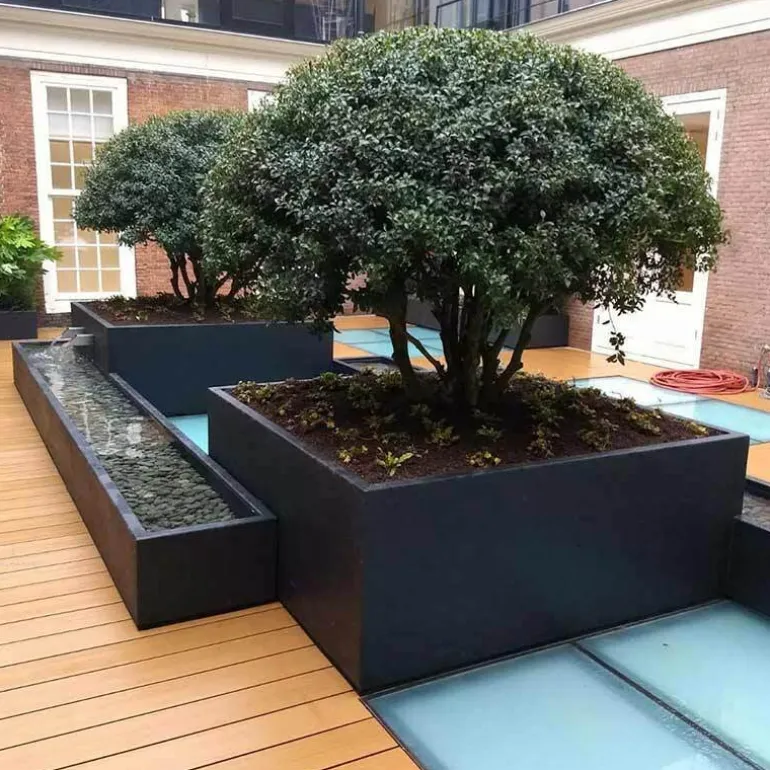 80x80cm + 100x100cm + 120×120 + 140×140 + 160×160 + 200x200cm store firkantede krukker i glasfiber / polyester – i glasfiber / Antrazit