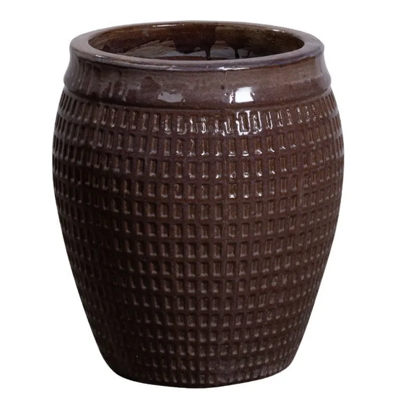 Mega krukke i brun blank glaseret keramik med flot mønster – 3 størrelser – op til Ø.81cm