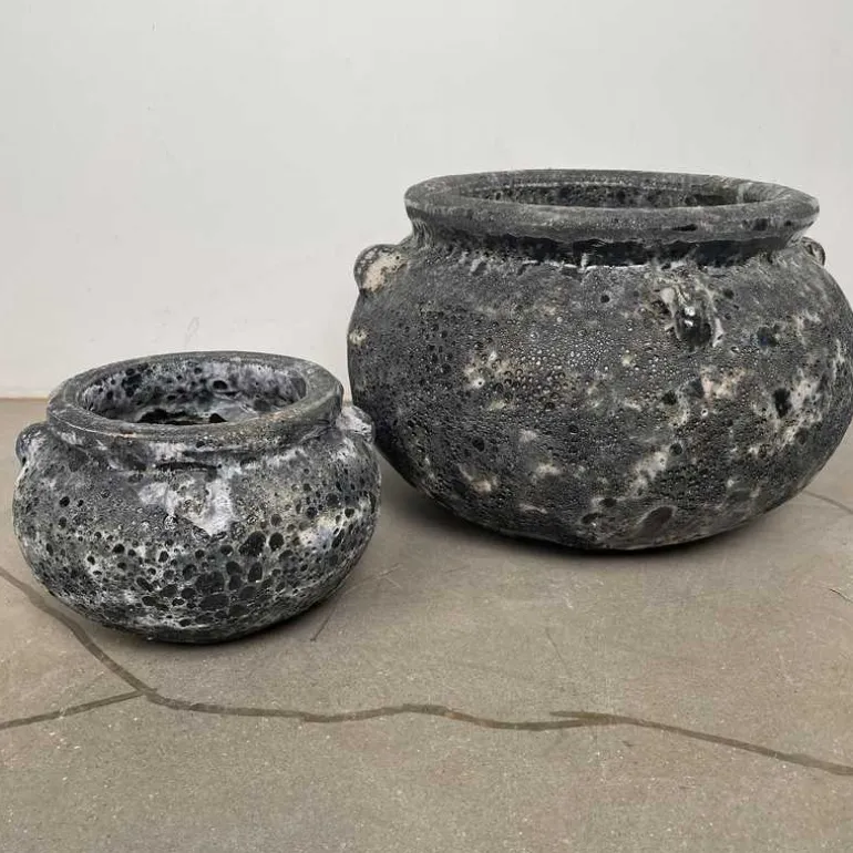 Helt unikke krukker i vintage lava look – fremstillet i keramik – sæt med 2stk – 3 farver