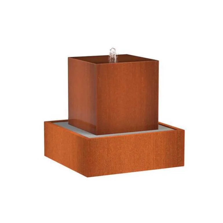 Eksklusiv kubisk Vandkunst / vandfontæne med vandkar i corten stål