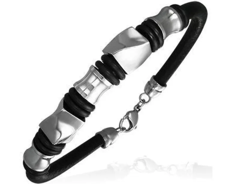 Italiensk inspireret læderarmbånd monteret med smukke stålcharms og gummiringe.