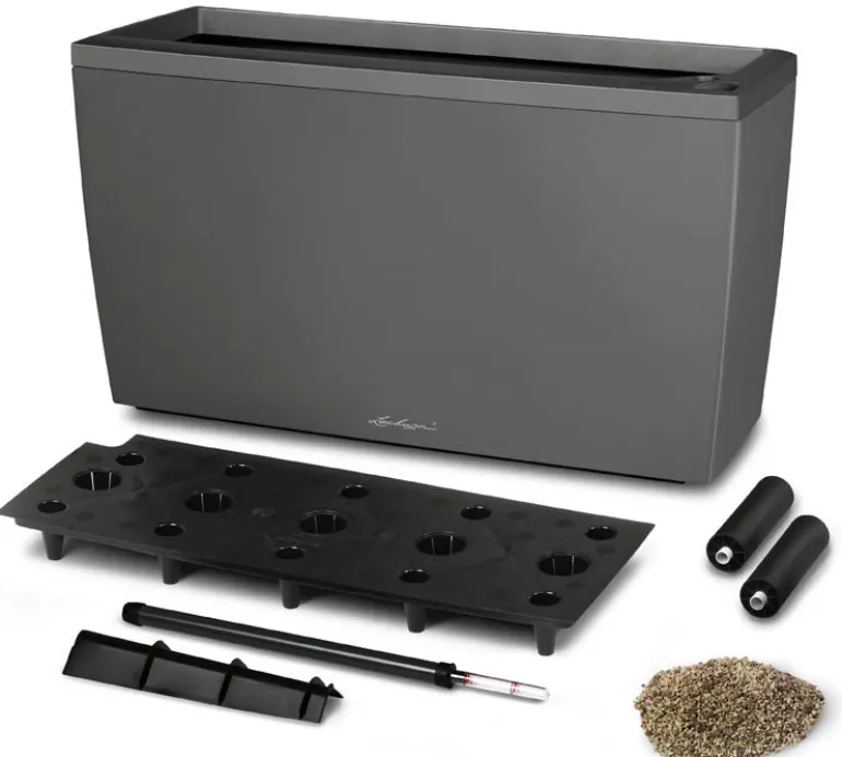 Her er løsningen hvis du leder efter en fleksibel og smart løsning med flytbare planter og blomster. Plantekummen leveres med skjulte hjul, så du let kan flytte den ved rengøring. Desuden kommer den med selvvanding så du bare skal fylde vand på, når vandmåleren siger det. En rigtig elegant og nem måde at få flotte planter i boligen eller udestuen – vanddepot op til 10 uger.