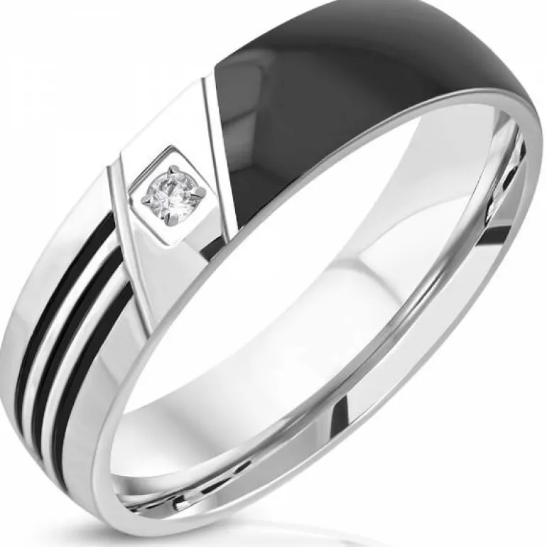 Lækker stålfingerring i super flot design til både kvinder, mænd og par – Med CZ sten så den danser lidt i lyset.