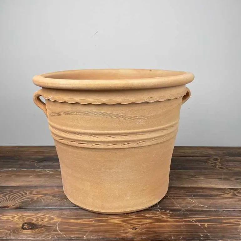 Flot og naturligt look i brændt ler / terracotta med fine detaljer på overfladen og med ører.