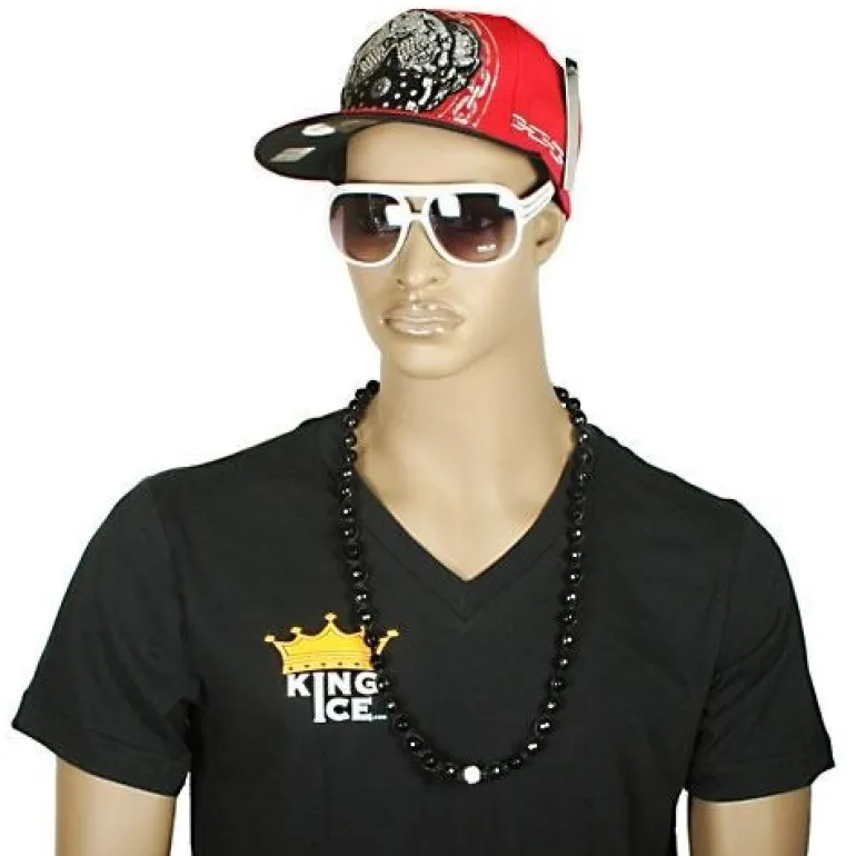 12mm sorte facetslebne onyx perler og center perle med hvid Krystal. Top moderne USA halskæde til trendy mænd