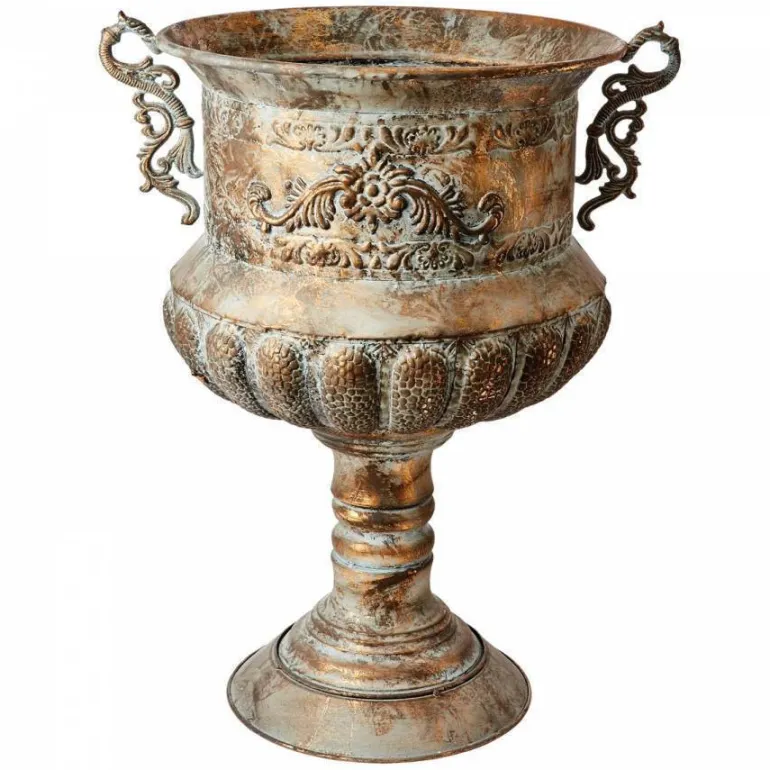 65cm smukke nostalgiske potteskjulere / pokaler på fod til dekoration i metal – antik sølv, antik hvid og antik guld