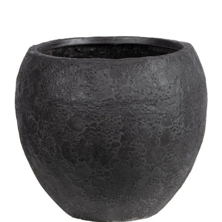 Skøn sort rustik rund fiberstone krukke der er inspireret af havbund og sydlandsk stemning – leveres UDEN bundhul.