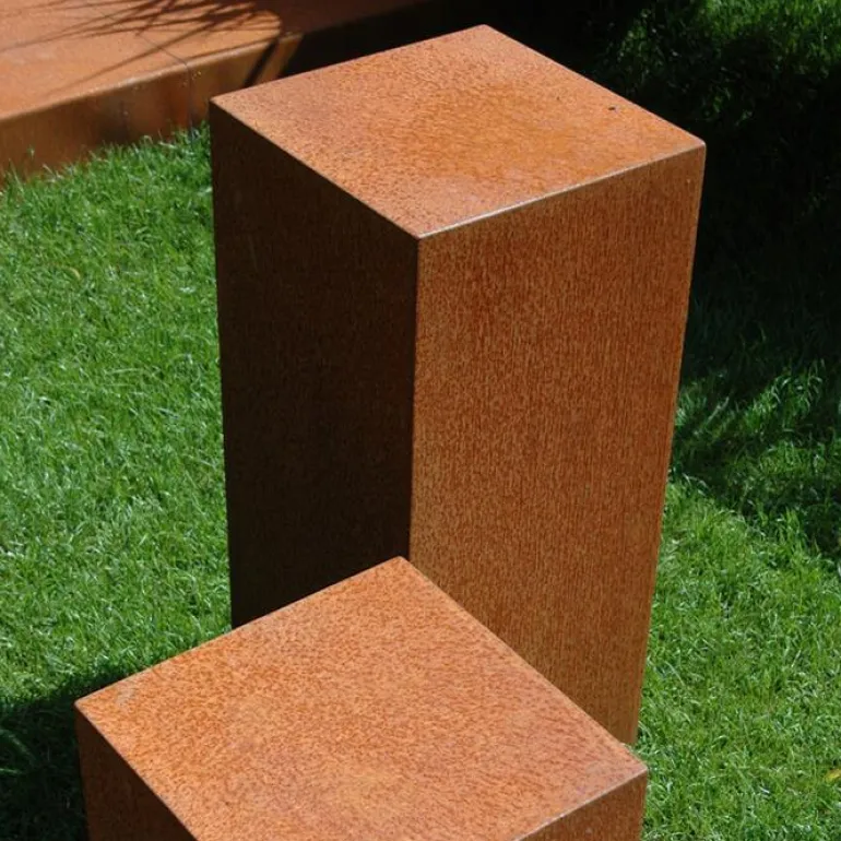 Flotte og meget anvendelige sokler / piedestaler i cortenstål der ruster med tiden.