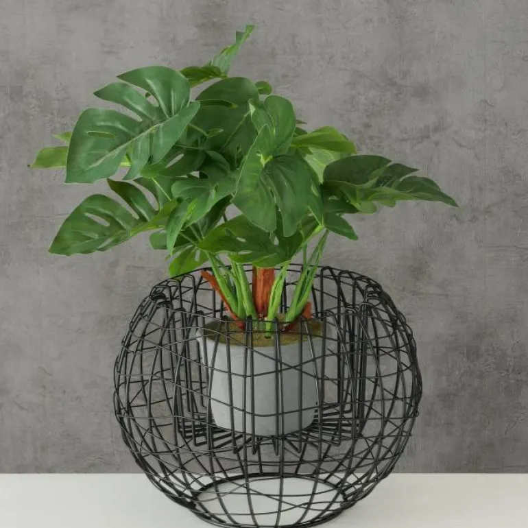 Smart abstrakt potteskjuler med sorte jernstænger – Ø.26cm udvendigt