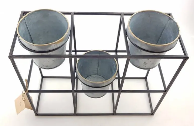Super smart stativ i sort metal med små zink potter til f,eks krydderurter i køkkenvinduet. Enkel og flot system som samler dine planter på ét sted.