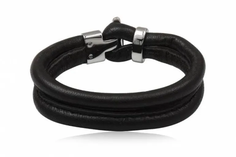 19cm luksus armbånd i sort randsyet læder / til Hende