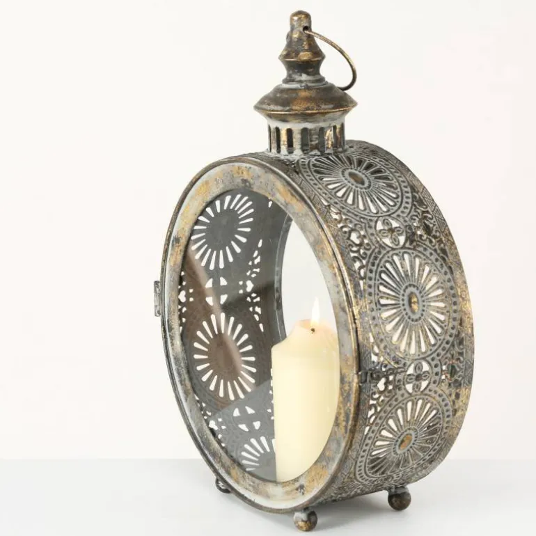 Rund gammeldags lygte / lanterne i antik guld