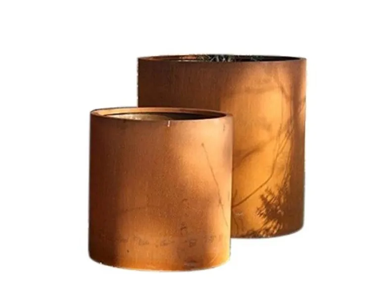 Tøndeformede krukker i corten stål med overfladerust