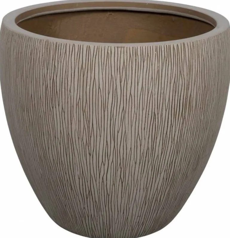 Lækre moderne store letvægts plantepotter i sandfarve med flot mønster / striber.