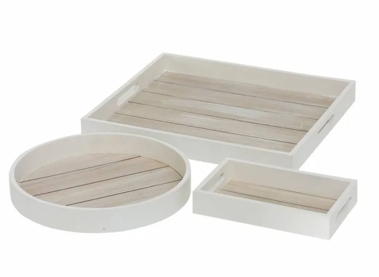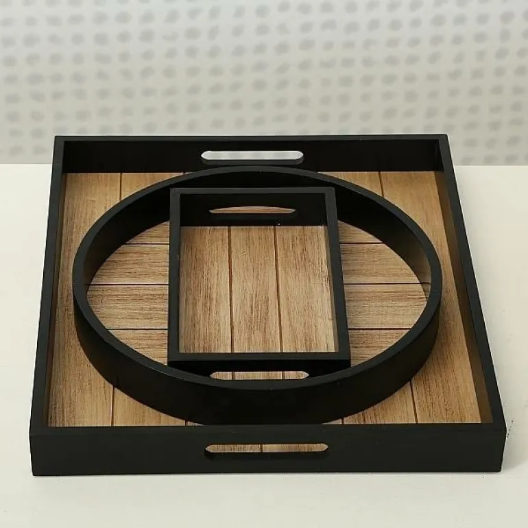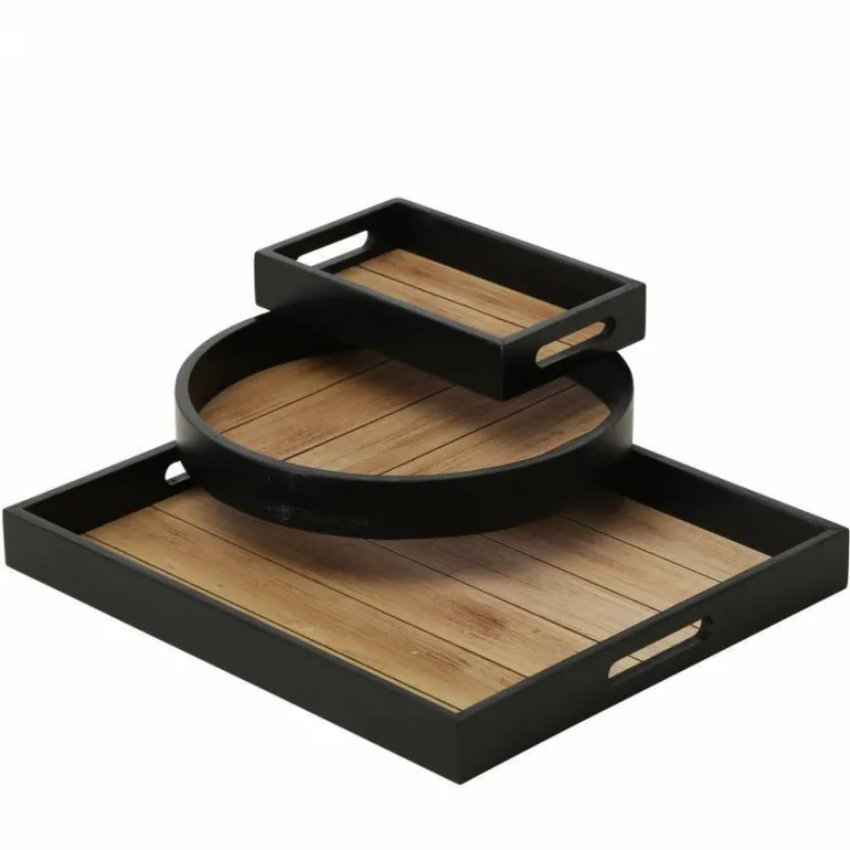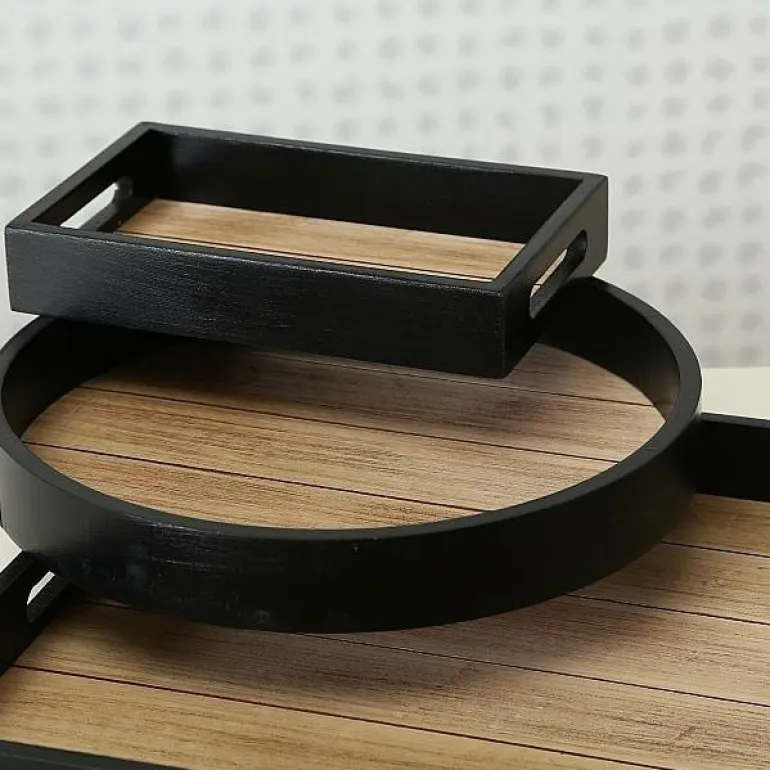 Super flotte serveringsbakker i sort eller hvid mdf / naturfarvet træ – 3 stk