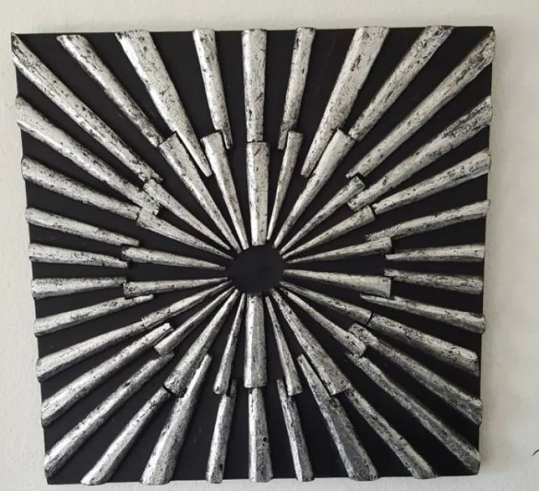 60x60cm vægdekoration i massiv sort træ med træstave i antik sølv – fra