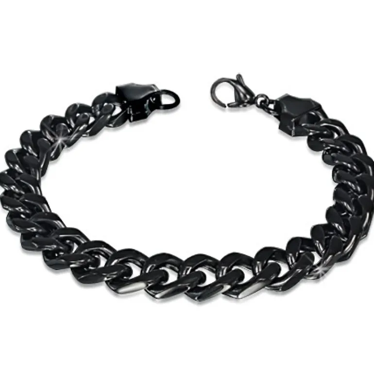 Sort cuban link stålarmbånd
