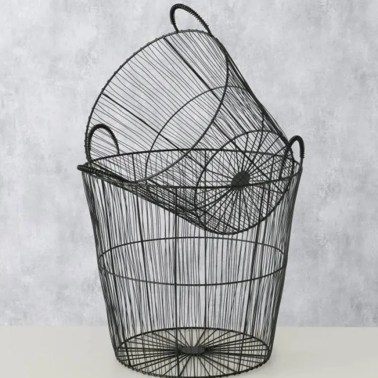 Fint sæt med 2 sorte trådkurve i let design – Med metaltråd og håndtag – Ø.32cm + 40cm