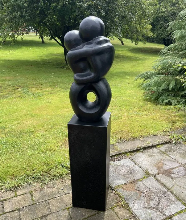 Rigtig flot sæt med sort soulmate Terrazzo haveskulptur og tilhørende separat sokkel i sort Terrazzo – som kan bruges både indendørs og udendørs som unik dekoration.