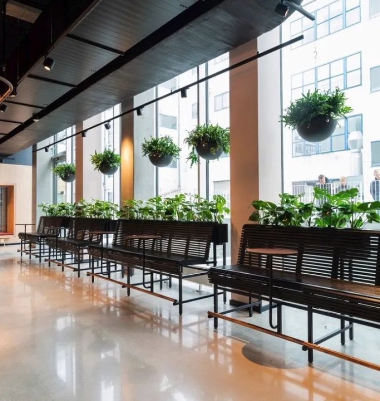 Moderne og innovativ ampel til blomster og planter – uden bundhul, så den er vandtæt. Fremstillet i holdbar og vandtæt polystone materiale.