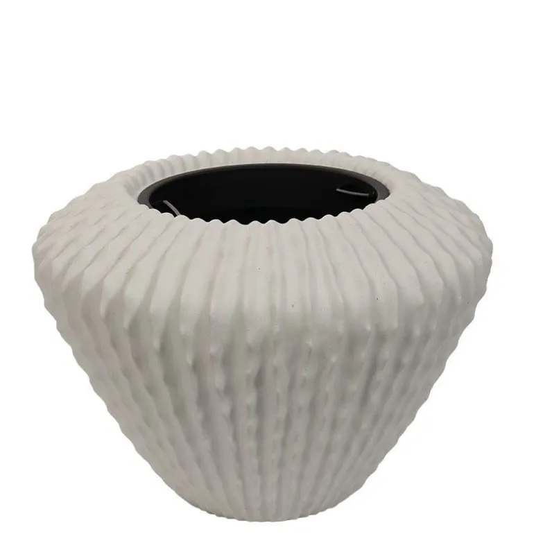 Flot speciel indendørs stor konisk krukke med kaktus look – lavet i lysgrå mat fiberstone materiale og kommer med vandtæt indsats i toppen – Bemærk at indsats IKKE går til bunden.